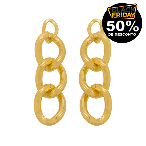Brinco corrente elos 16mm trabalhado, medindo 5,5x1,6cm BANHO DE OURO