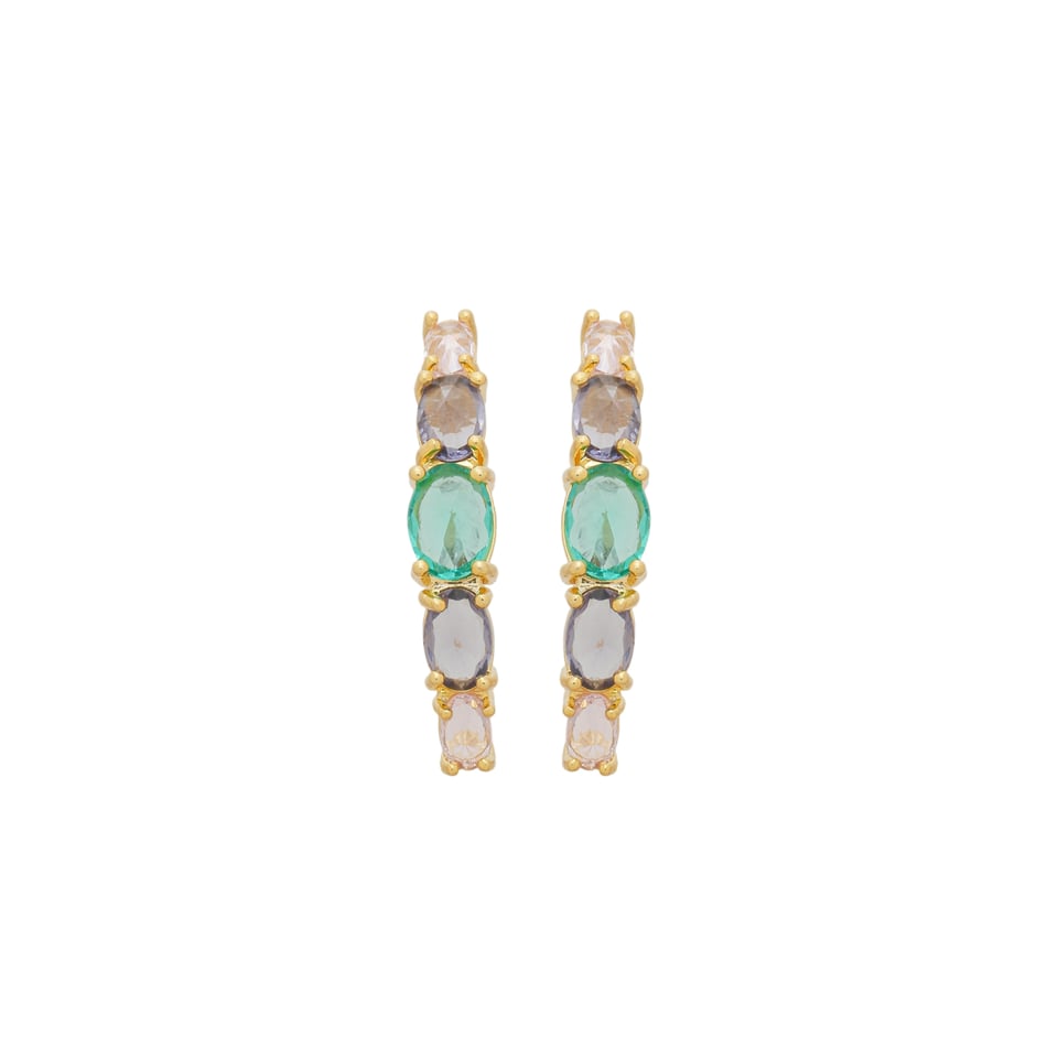 Brinco ear cuff com pedras oval zircônia colorida, medindo 3cm de comprimento BANHO DE OURO