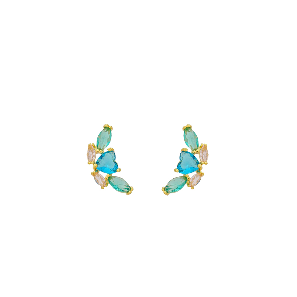 Brinco ear cuff pedras navete zircônia colorida e pedra coração 5x5mm preta, medindo 1,8cm de comprimento BANHO DE OURO