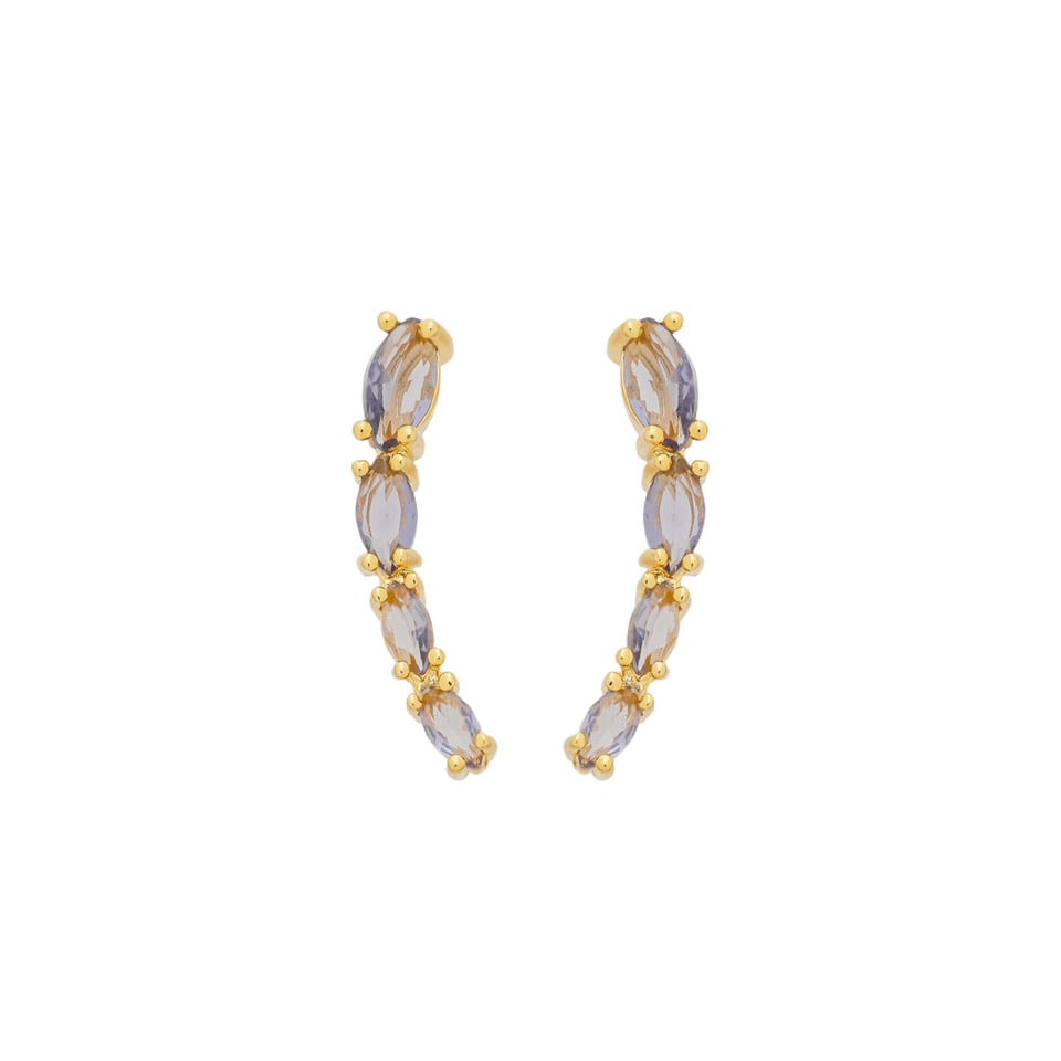 Brinco ear cuff com pedras navete zircônia lavanda, medindo 2cm de comprimento BANHO DE OURO