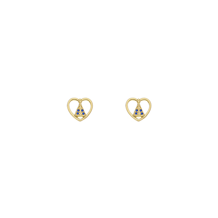 Brinco fixo coração Nossa Senhora Aparecida com pedras 1,0mm zircônia azul, medindo 0,9x0,9cm BANHO DE OURO