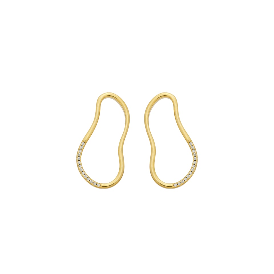 Brinco orgânico oval vazado com pedras 1mm zircônia, medindo 3x1,5cm BANHO DE OURO