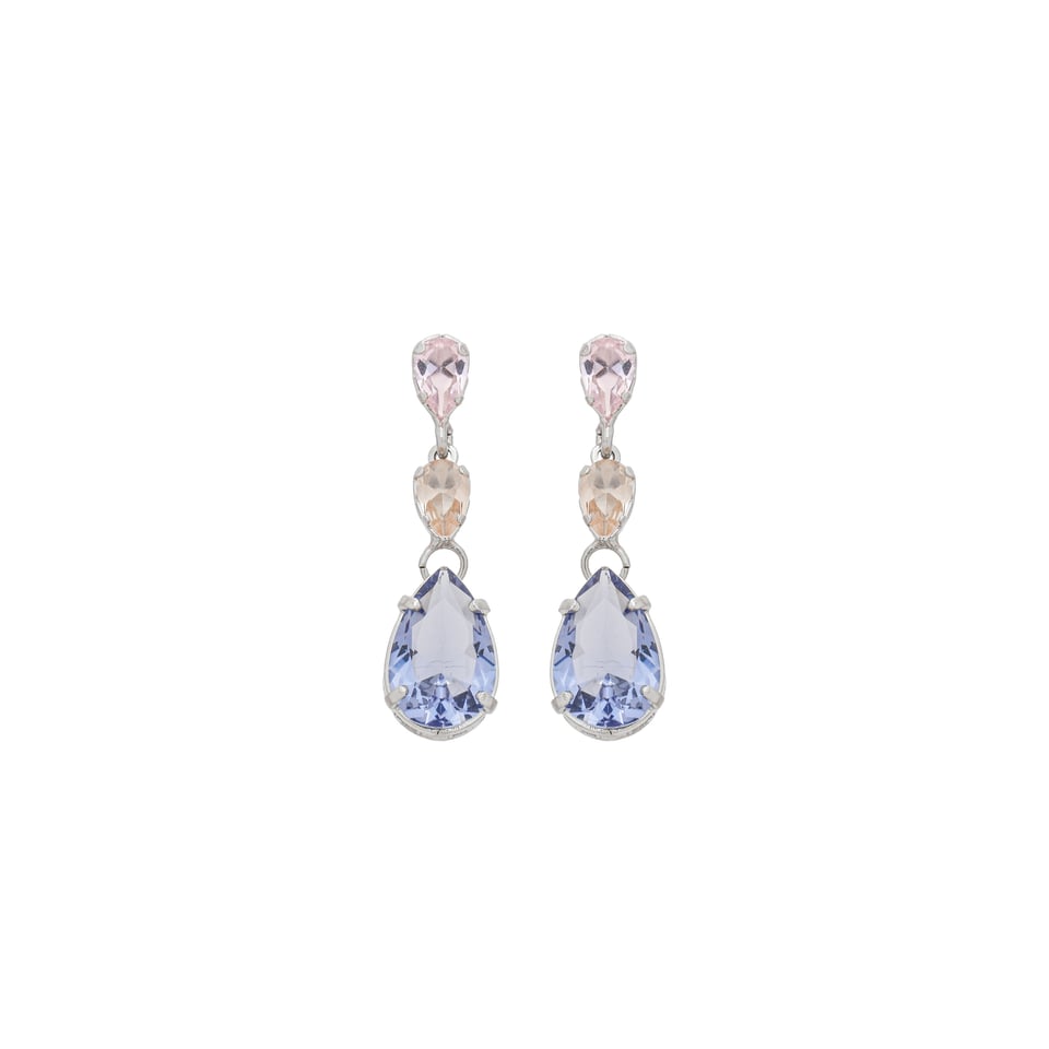Brinco gota 6x4mm rosa, 6x4mm champanhe, 12x8mm lavanda zircônia colorida, medindo 3cm de comprimento BANHO DE RÓDIO