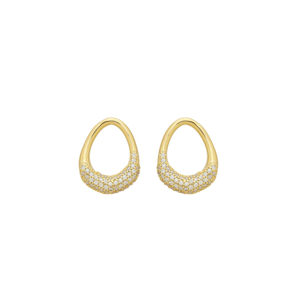 Brinco pingente com pedras 1,00mm zircônia, medindo 2,0x1,6cm BANHO DE OURO