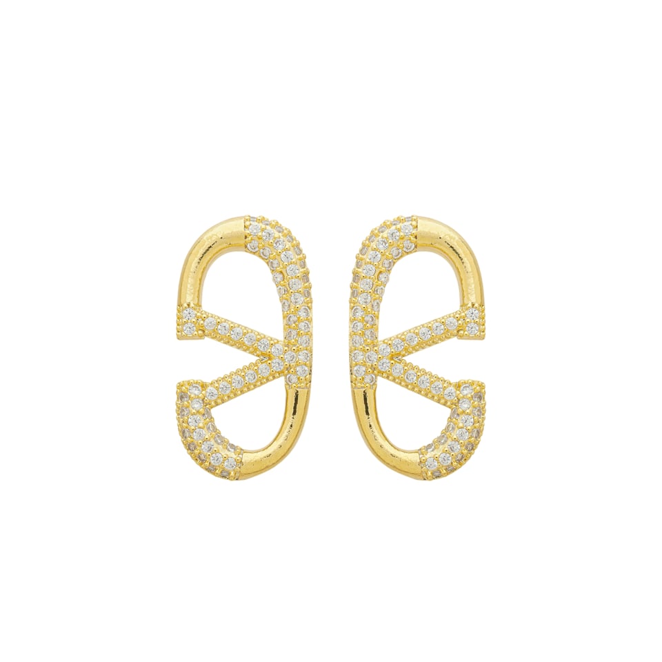 Brinco réplica Louis Vuitton cravejado de pedras 1,00mm zircônia, medindo 2,0x2,0cm BANHO DE OURO