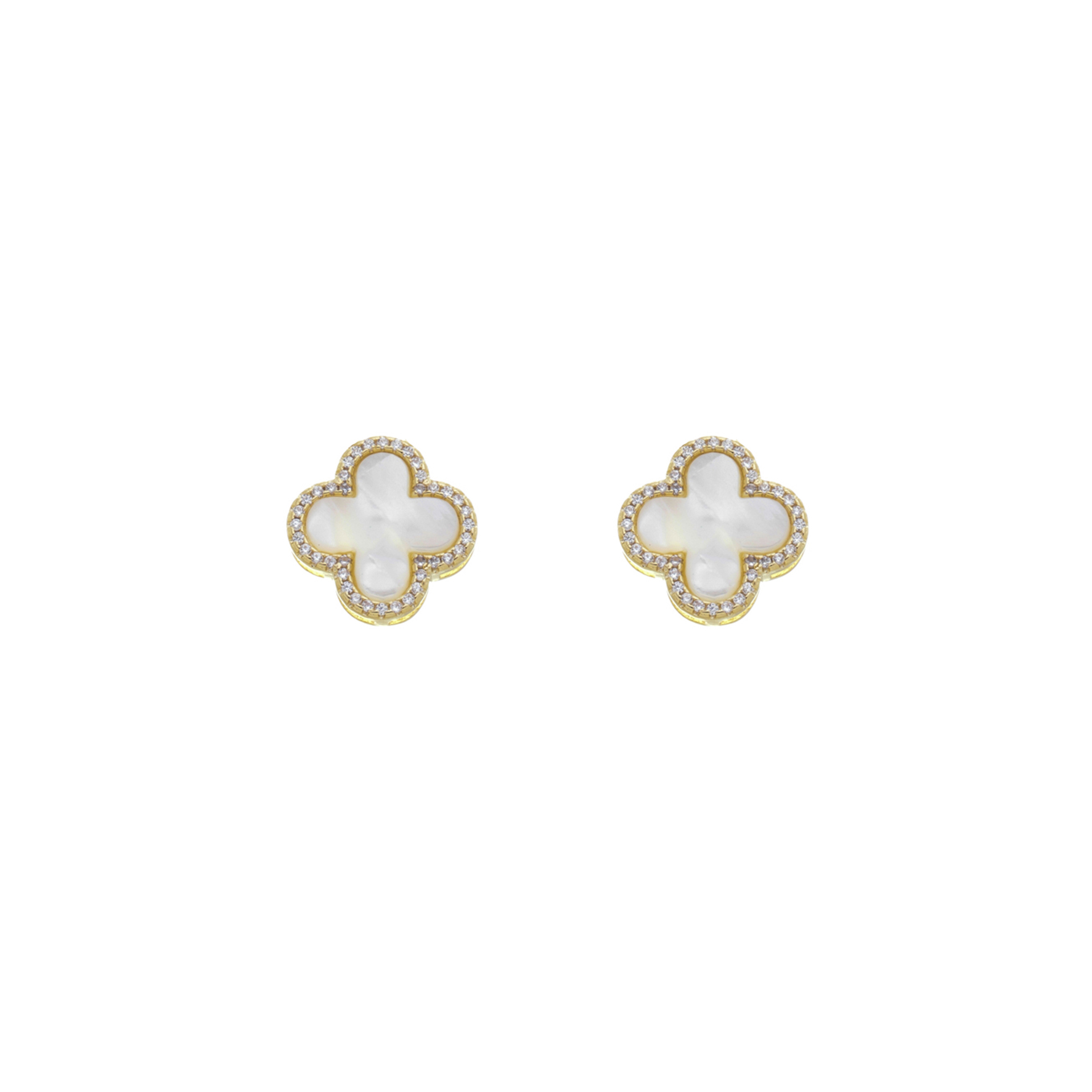 Brinco réplica trevo madrepérola, pedras 1,0 zircônia , medindo 1,3x1,3cm BANHO DE OURO