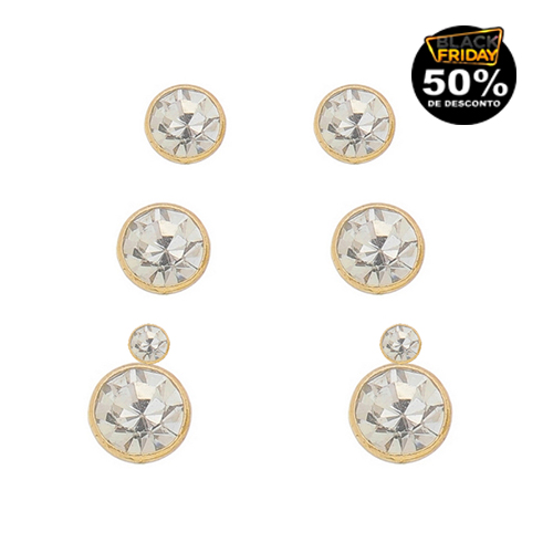 Brinco trio com pedras 5mm, 7mm 8mm zircônia BANHO DE OURO
