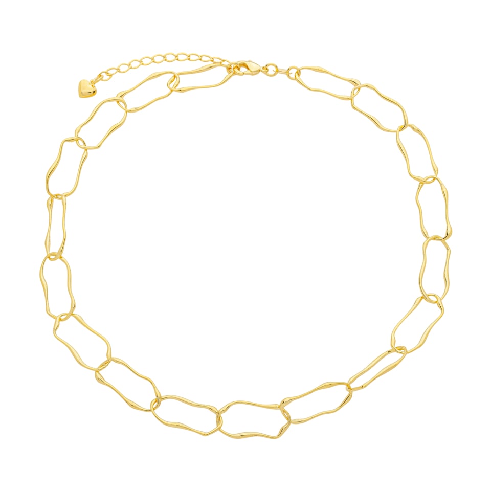 Corrente elos orgânicos 10mm, comprimento 40cm + 5cm de extensor BANHO DE OURO