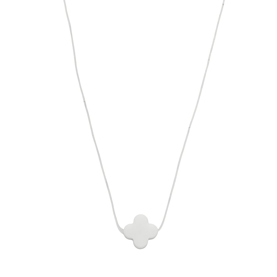 Corrente fio silicone com pingente trevo madrepérola, medindo 1,3x1,3cm, comprimento 42cm BANHO DE OURO