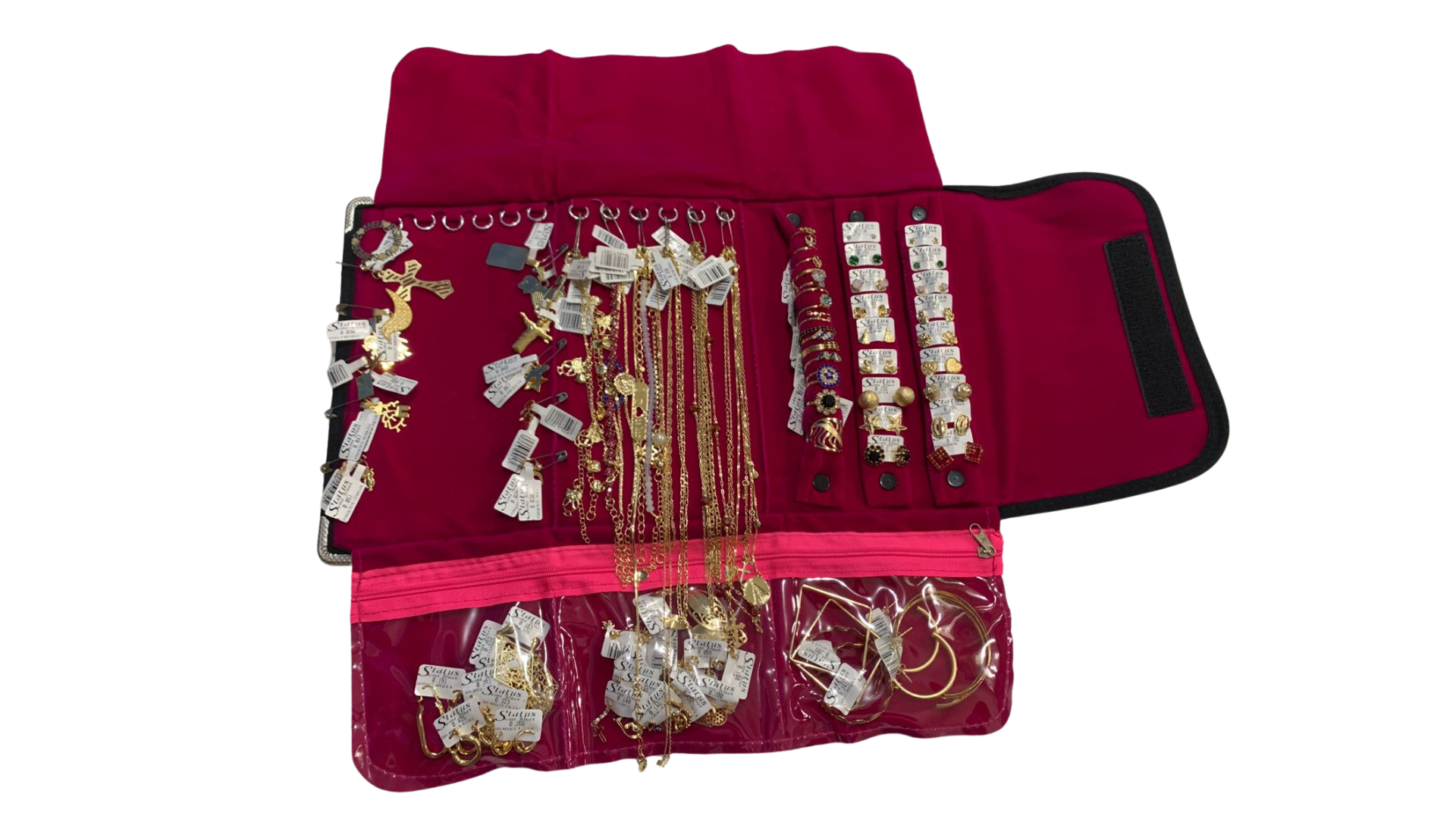 Mostruário pink médio montado com 99 peças em Banho de Ouro, sendo: