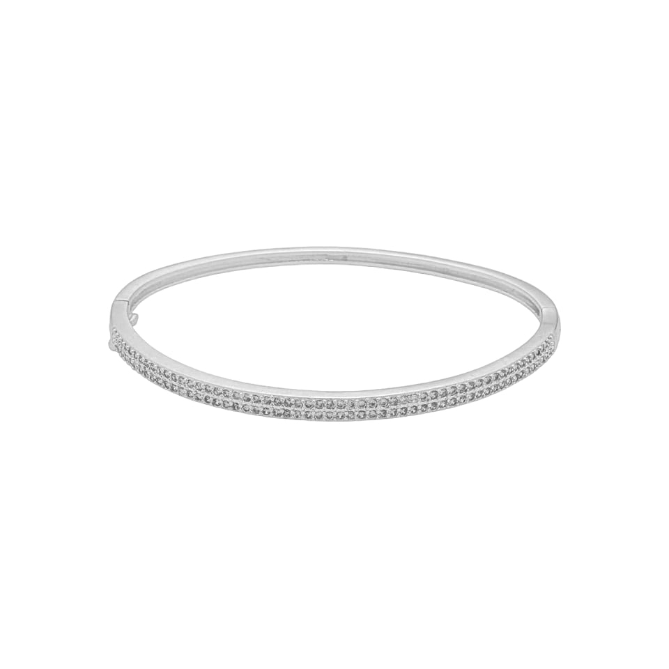 Bracelete com duas fileiras de pedras 1mm zircônia, medindo 5,5x 6,2cm BANHO DE RÓDIO