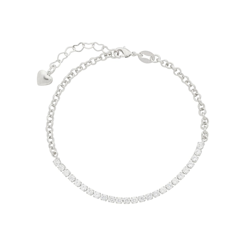 Pulseira malha portuguesa 3,2mm com pedras 2,0mm zircônia, comprimento 18 + 3cm de extensor BANHO DE RÓDIO