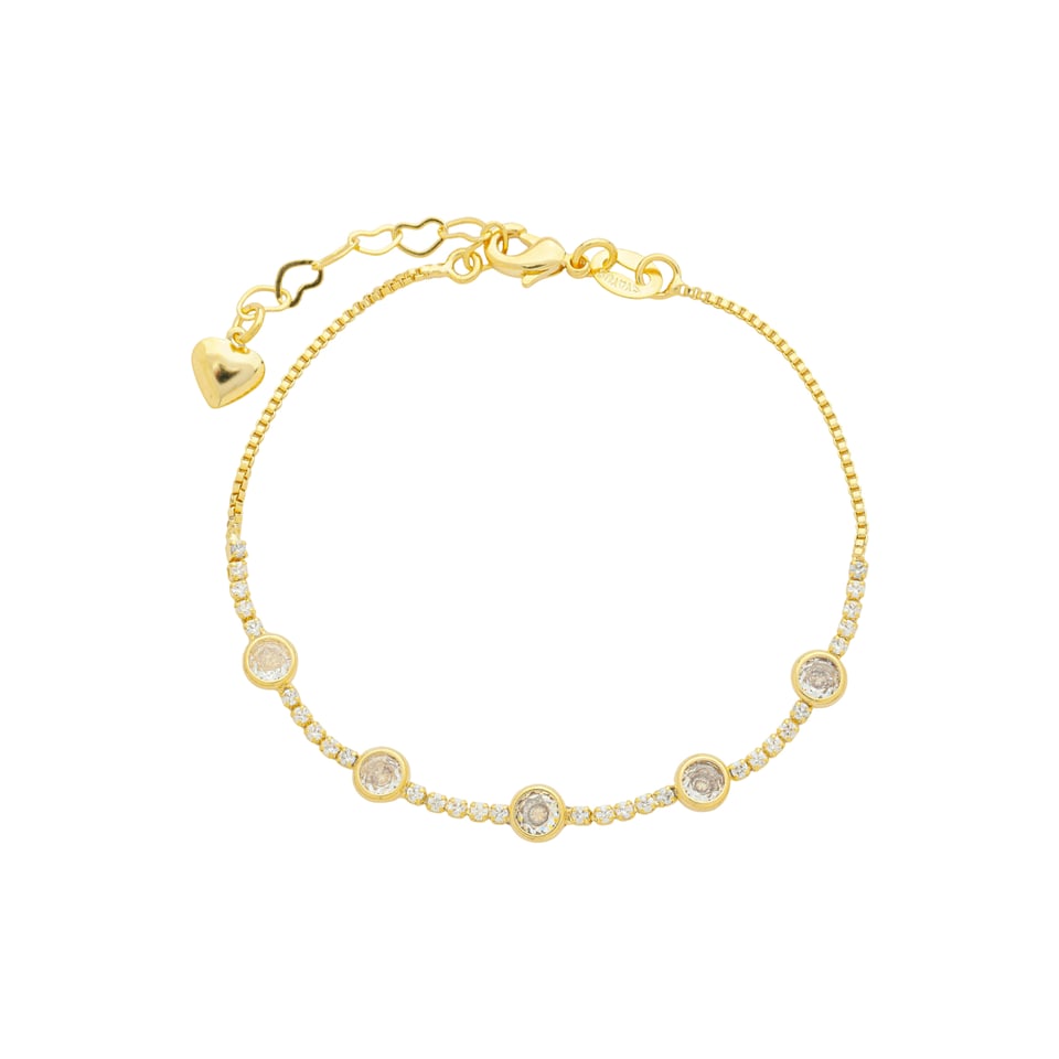 Pulseira malha veneziana 1,0mm com pedras 4,0mm e 1,5mm zircônia, comprimento 18cm +3cm de extensor BANHO DE OURO