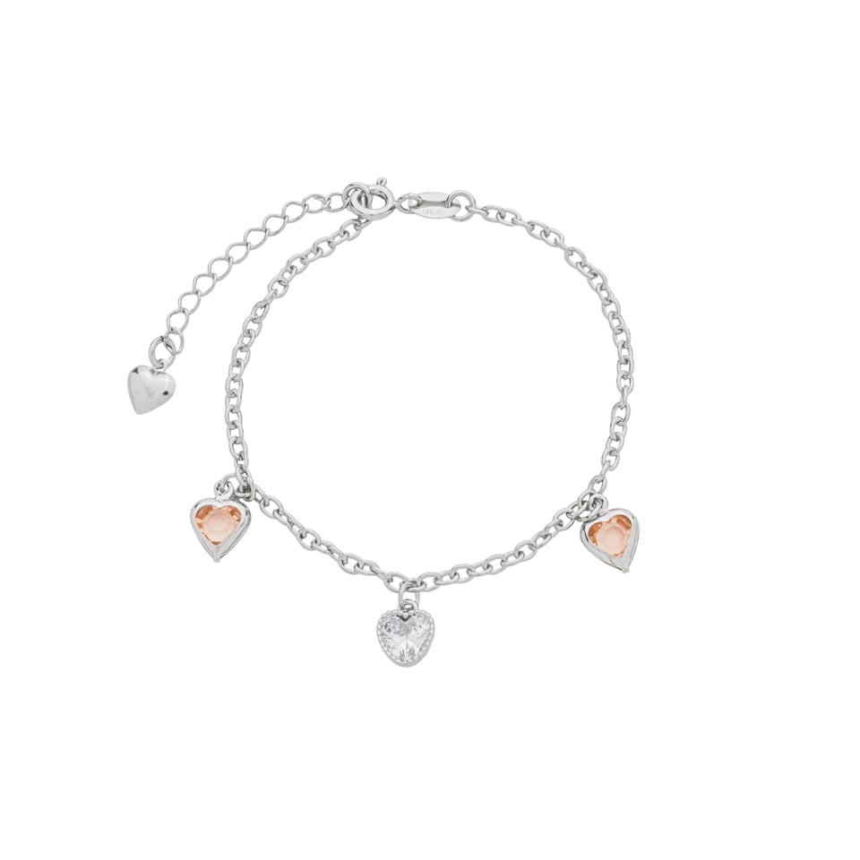 Pulseira cadeado 2,5mm com pingente coração pedra 6x6mm zircônia branca e pink, comprimento de 16cm + 3cm de extensor BANHO DE RÓDIO